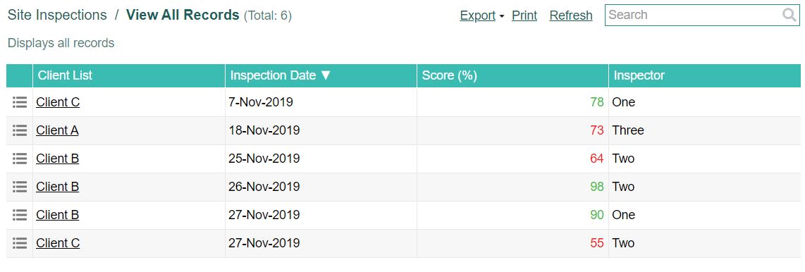 Administrators need to record total site visits in a Clients application, the app should record how many times an inspection has been performed for each client. This task could be performed manually, by either an administrator or an inspector adding an increment for each inspection.