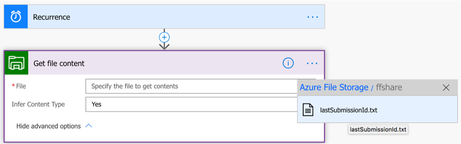 The value of the last processed 'lastSubmissionId' should be saved in persistent storage such as a database column, or in the file system (for Power Automate this could be an Azure file).