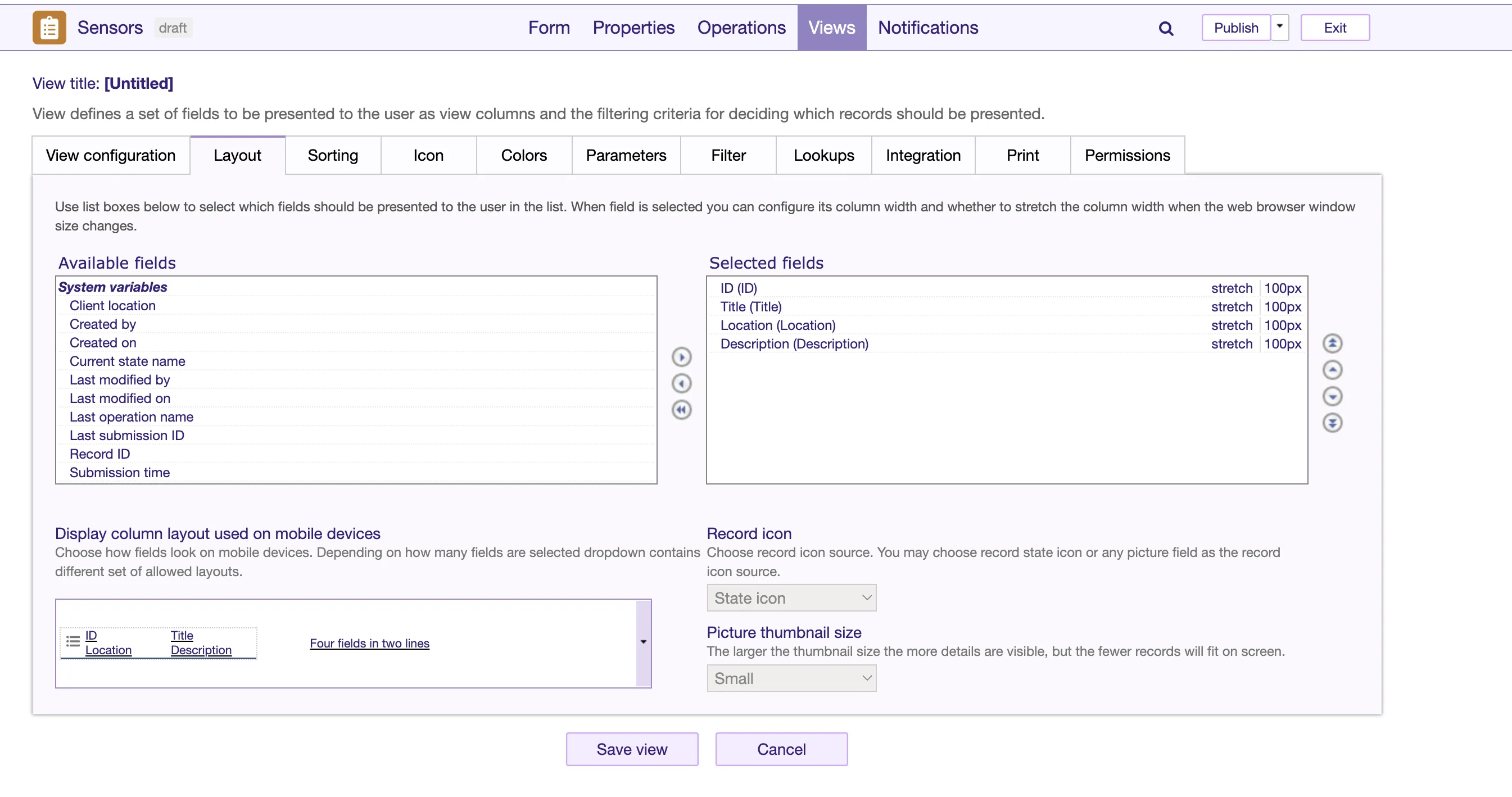 - Go to the 'View' tab and create a new view that will be enabled for lookup and assign the display columns in the 'Layout' section.
