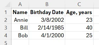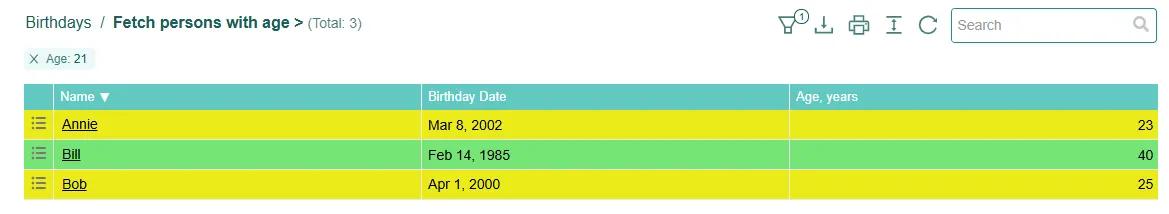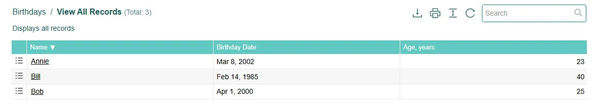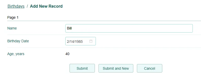 The field will now calculate the age of the person based on their birthdate and the current date.