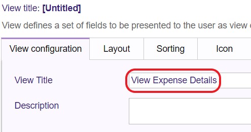- In the Views section, select 'Add View.' Name the view appropriately (e.g. View Expense Details) and provide a description if necessary.